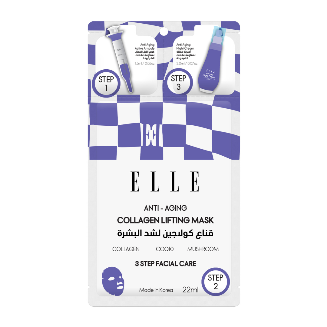 Transform your skincare routine with the ELLE Anti-Aging Collagen Lifting Mask 3-Step Care Kit, from South Korea, a powerful solution for radiant, youthful skin.