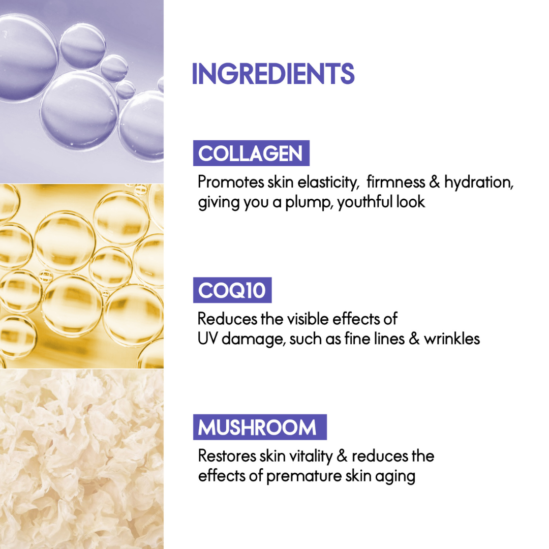 2. Step 2 – Firming Sheet Mask: Enriched with Hydrolyzed Collagen and Elastin to boost elasticity, reduce wrinkles, and enhance firmness.