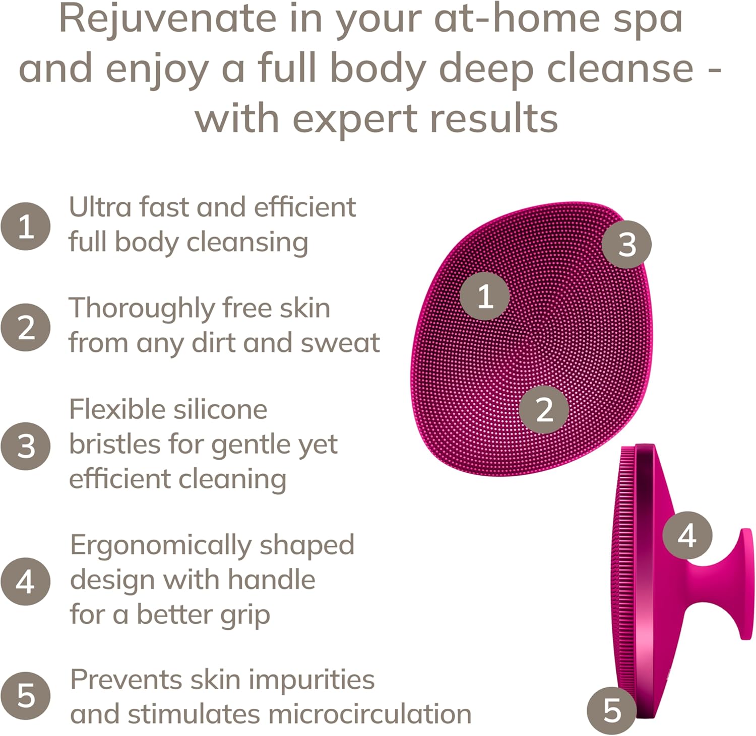 • Deep Cleansing – Soft & flexible silicone tips gently remove excess sebum, dirt, and impurities to help prevent blackheads and pimples.